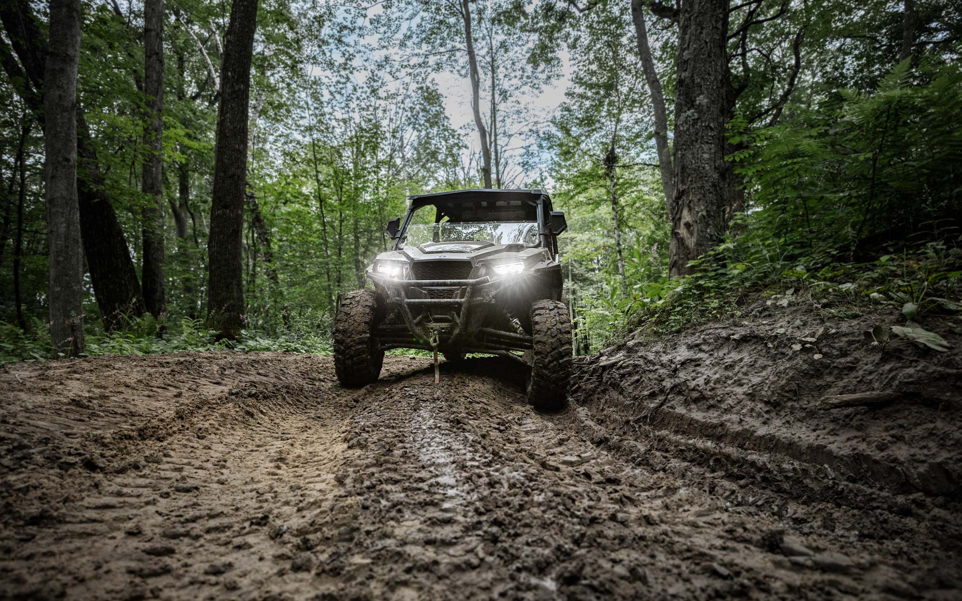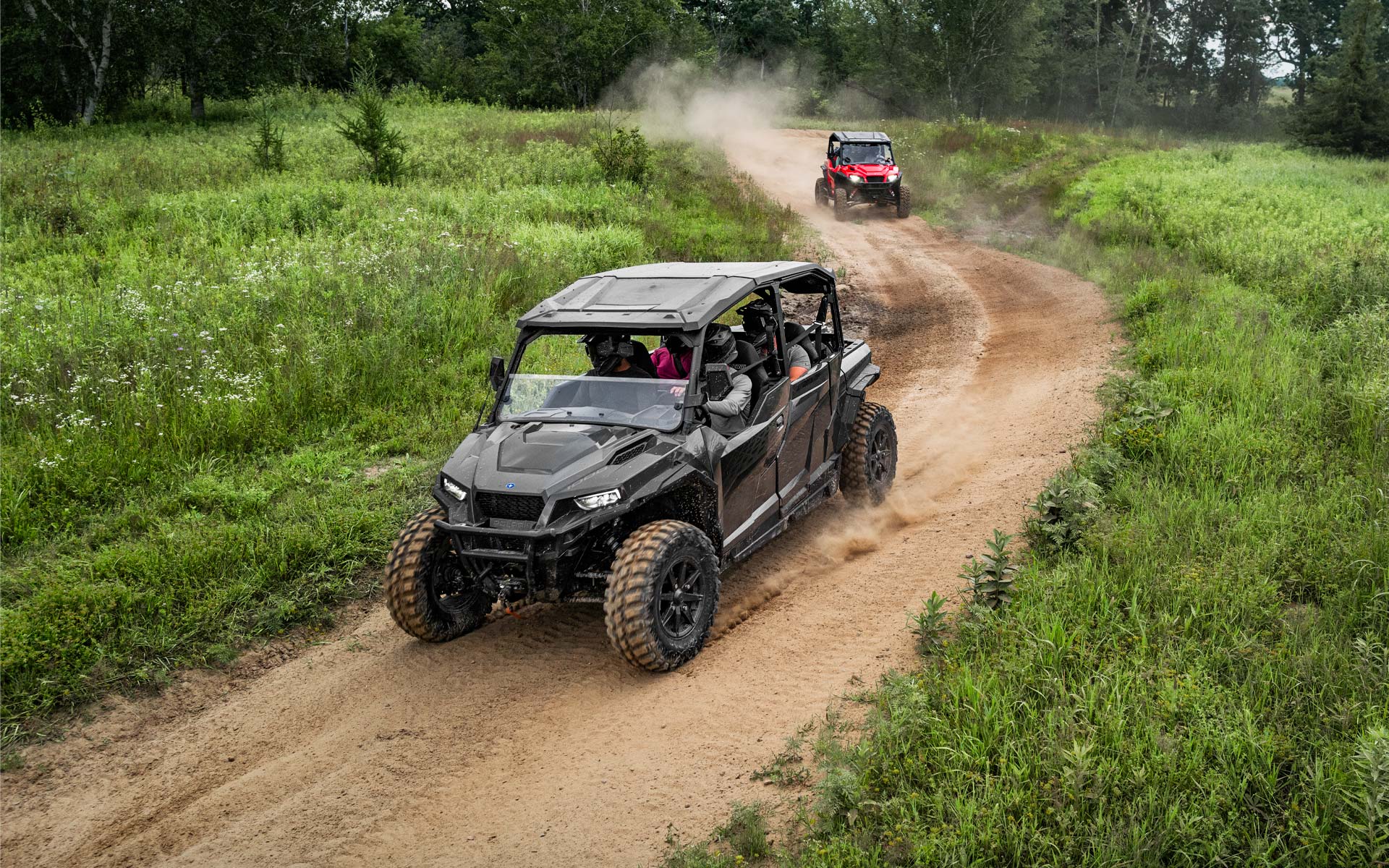 Ao encarar trilhas com o GENERAL XP 1000, você conta com um chassi inspirado em desempenho, motor de 101 CV e tração nas quatro rodas de engate rápido — tudo o que você precisa para dominar qualquer terreno.