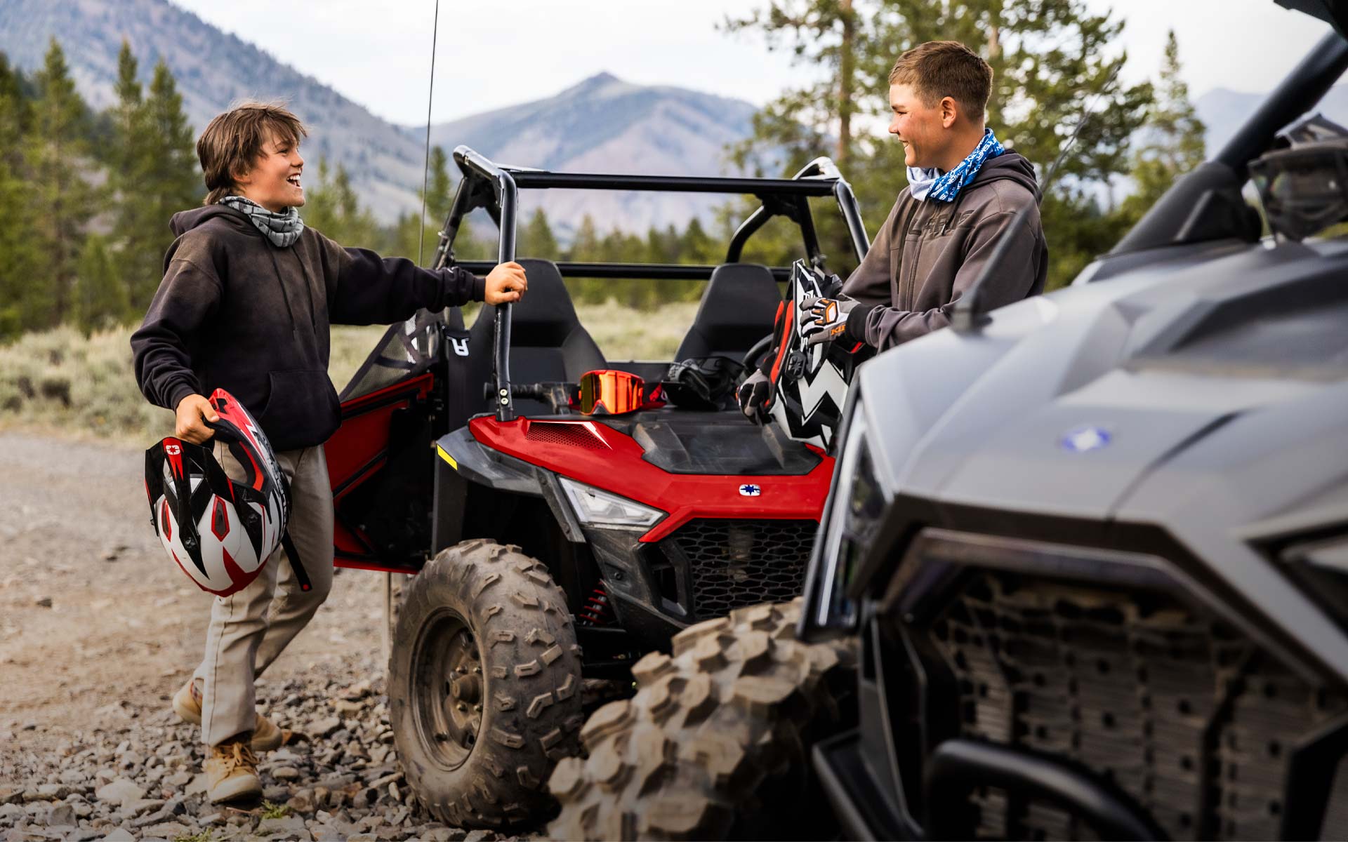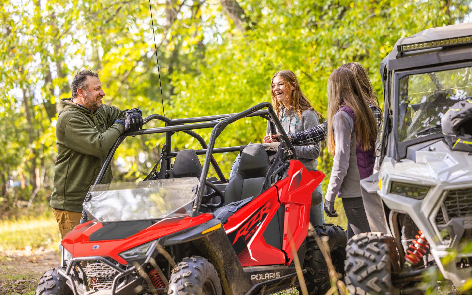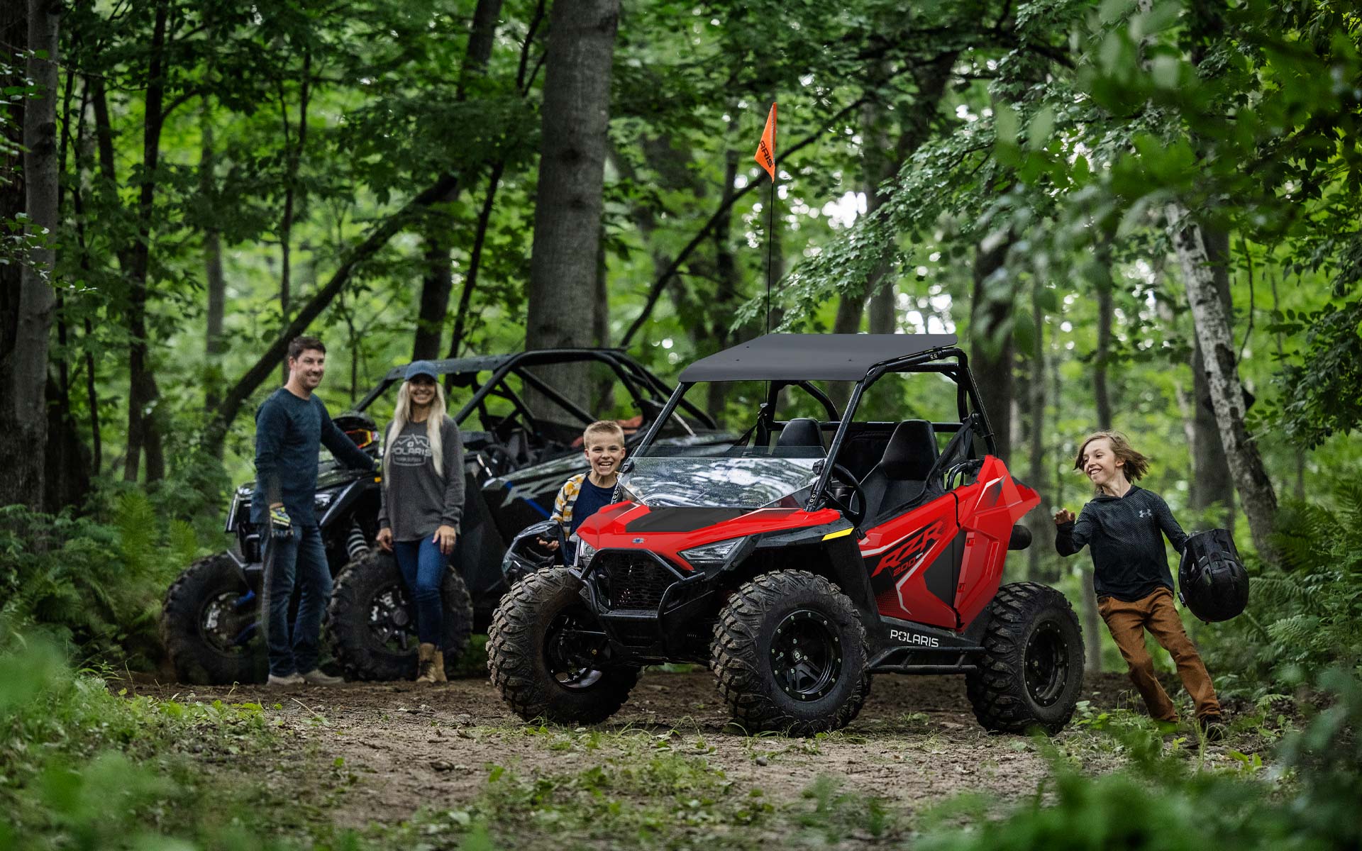 Com motor EFI de 180 cc, banco e volante ajustáveis, assento para passageiro e acessórios, o RZR 200 permite que os jovens pilotos cresçam junto com seu side-by-side. Indicado para crianças a partir de 10 anos.